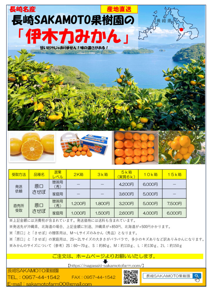 「原口みかん」と「させぼみかん」のご注文(ご予約)受付中! 2025-10-30 最終更新日時 : 2025-10-30 sakamotofarm 原口みかんは11月中旬頃から、させぼみかんは12月上旬頃から発送または直売所でのお渡しとなります。 皆さまのご注文を心よりお待ちしております。(^o^)/ 毎年完売必至!ご注文はお早めに! Bluesky